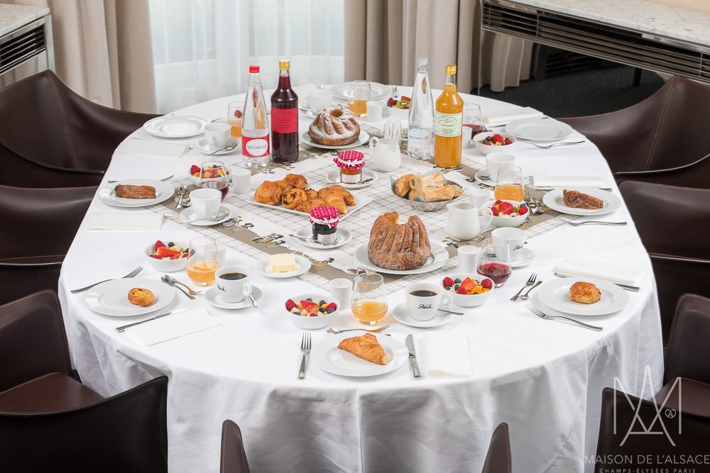 Nous vous proposons un petit-déjeuner à 20€ hors taxes par personne (hors location de salle - service non compris).